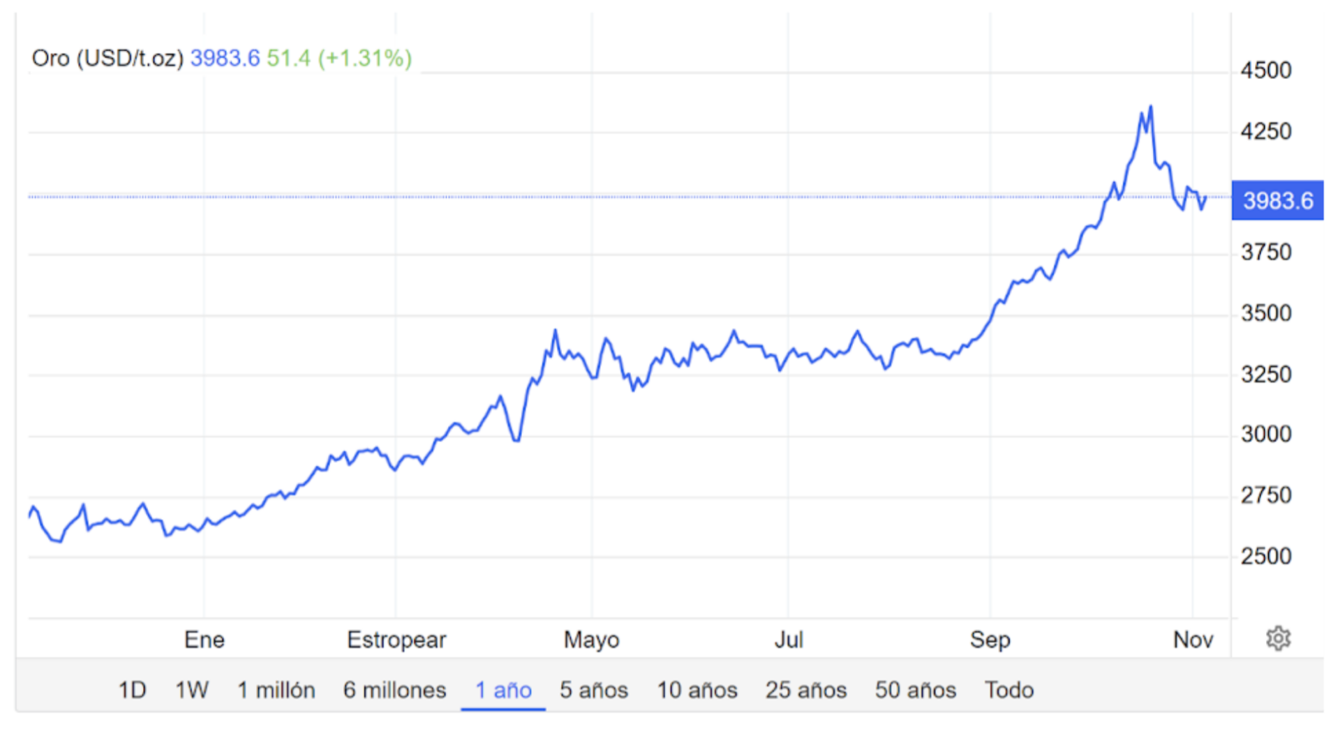 - Trading Economics (2025). “Gold – Price Chart and Historical Data”. Disponible en: Oro - Precio - Gráfico - Datos históricos - Noticias
