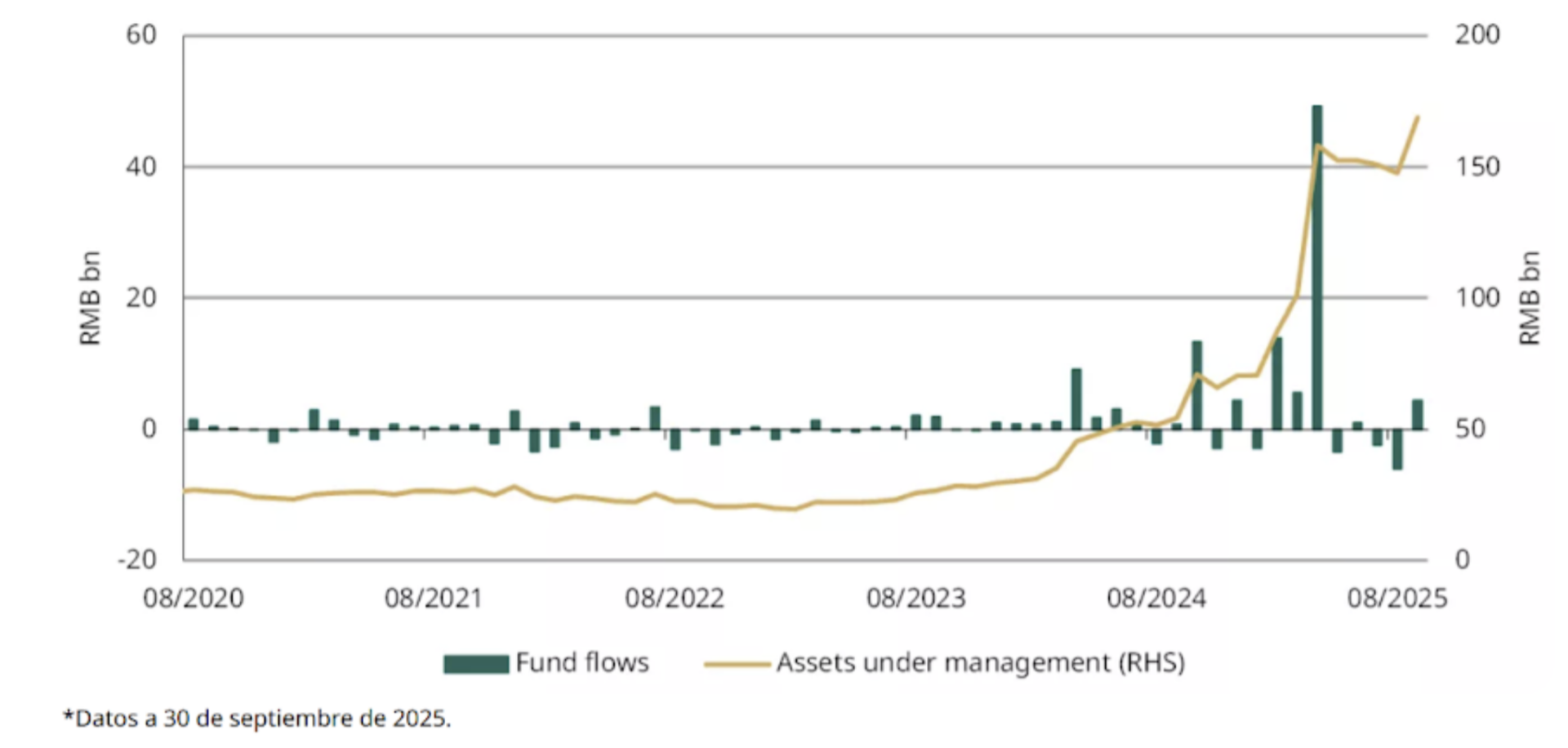 Figura 2. Aumento de las compras de oro en China a través de ETF (2020–2025)