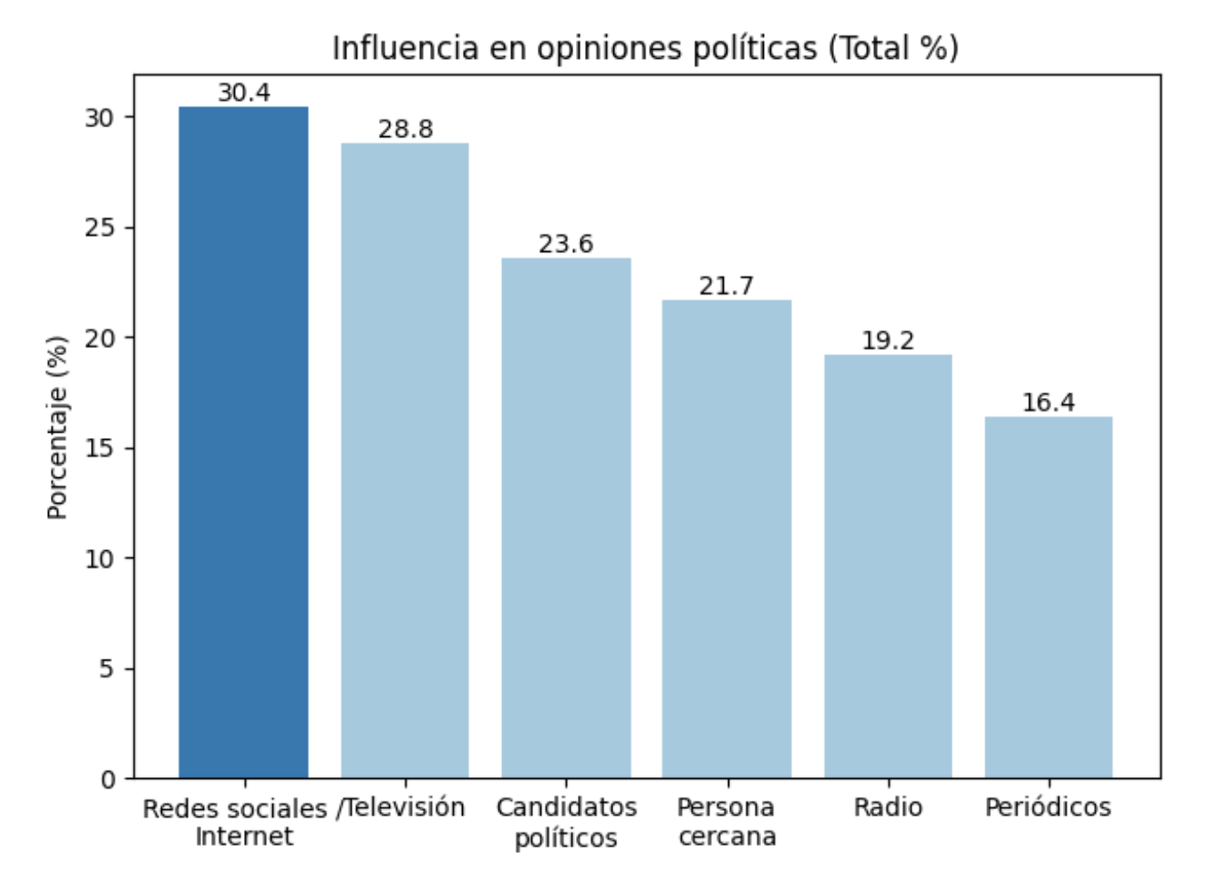 Figura 1. Principales fuentes de influencia en las opiniones políticas en los últimos dos años (porcentaje total)